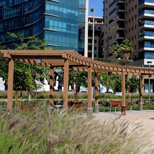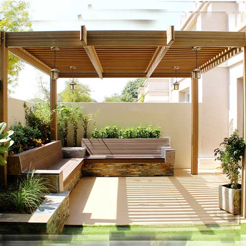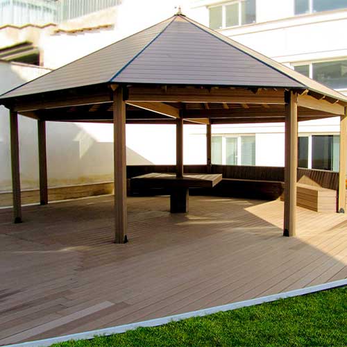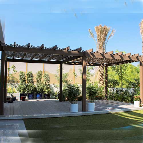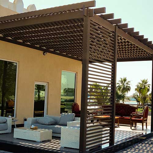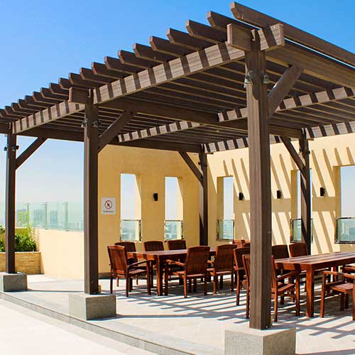 A charming pergola provides the perfect shady spot to escape the hot summer sun. TherraWood® has combined high-quality wood fibres and virgin polymer resins to create pergolas that look remarkably like real wood but with far higher durability and greatly reduced maintenance.